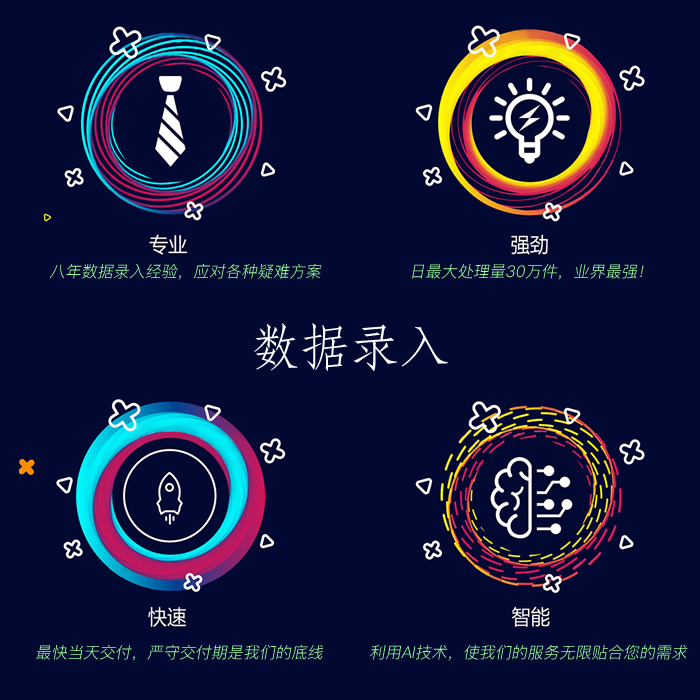 安博信息BPO事業(yè)致力于為客戶提供高品質(zhì)高標(biāo)準(zhǔn)的數(shù)據(jù)錄入,及優(yōu)質(zhì)、及時(shí)高效的服務(wù)和解決方案。以合理的價(jià)格、準(zhǔn)時(shí)、快捷、高效的增值服務(wù),使公司業(yè)務(wù)市場有更大的拓展。